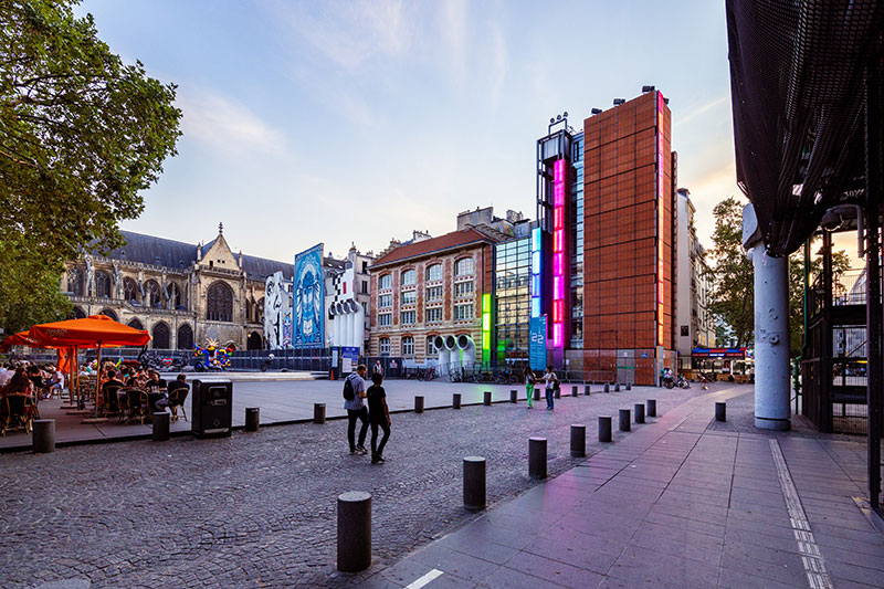Installation visuelle des artistes AROTIN & SERGHEI sur la façade de l'Ircam durant le festival ManiFeste, 2021