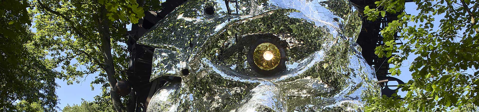 Installé en 1969 au cœur de la forêt de Milly-la-Forêt, fruit d’années de travail collectif de plusieurs artistes, orchestré par Jean Tinguely puis par Niki de Saint Phalle, le Cyclop est une œuvre monumentale et multiple, une énorme tête sans corps, à l’œil unique, à l’intérieur de laquelle les sons et le mouvement occupent une place centrale.