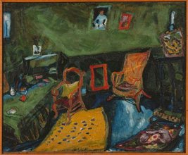 L’œuvre peinte révèle ainsi les années d’apprentissage à Saint-Pétersbourg, des œuvres de 1908 et 1909, comme l’Autoportrait, le Mort, ou la Sainte Famille, quasi monochromes. La découverte de Paris, vers 1910, celle de Van Gogh, avec l’éclatement des couleurs – la Révolte, l’Atelier – mais aussi la nostalgie des paysages de Vitebsk – le Père, la Grande Noce. 1914, c’est le retour en Russie, un espoir, vite déçu – le Salut, l’Autoportrait en vert, Bella au col blanc, œuvre que l’artiste gardera toujours auprès de lui. En 1923, Chagall revient en France. C’est l’époque des grandes toiles : la Corbeille de fleurs, la Révolution, les Mariès de la tour Eiffel, la Crucifixion en jaune, le Passage de la Mer Rouge, les Toits rouges…
