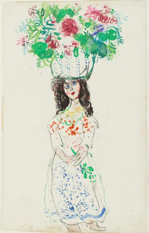 Maquette de costume pour "L’Oiseau de feu" : paysanne aux fleurs