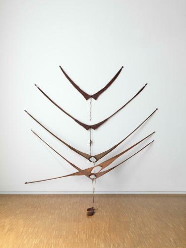 Superficie de l'ensemble 15 m2 Arrangement, bois, photographie, carton, papier aluminium, caoutchouc, cuir, métal, plastique, câbles électriques, son : 1 CD : Spirit Voices de 71'29'', 1 CD Indiana de 71'1" |