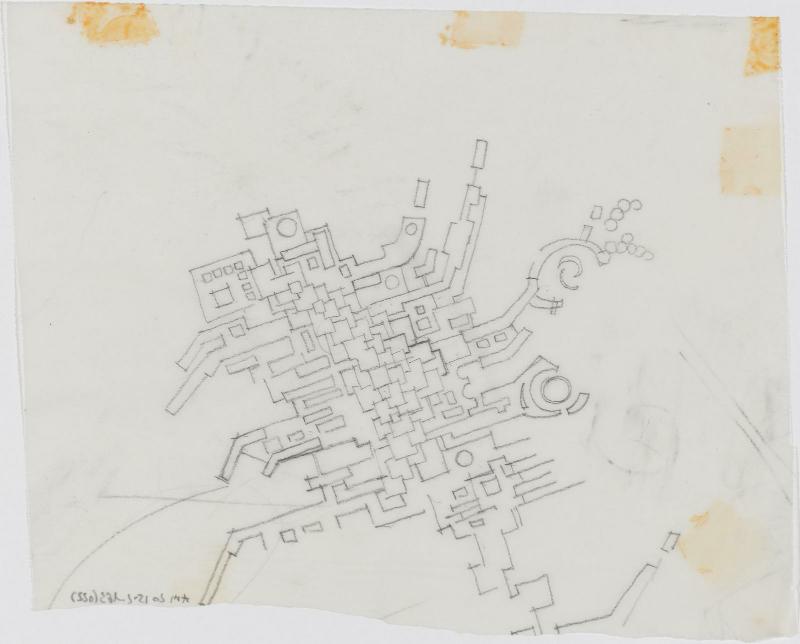 Perspective Etude pour l'ensemble crèche et école, détail de la façade...