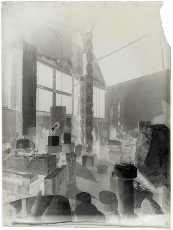 Vue d'atelier : L'Oiseau d'or (v. 1919), Colonne du Baiser...