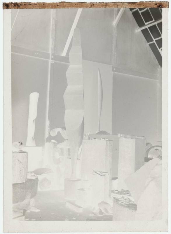 Vue d'atelier : Borne-frontière (1945), Maïastra, plâtre (1913 ?),...