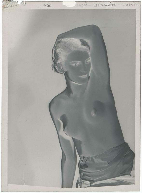 Lee Miller de dos, Pablo Picasso et une personne non identifiée