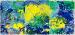 Ce triptyque aux vastes dimensions fait partie d’une suite de 16 peintures que Joan Mitchell a réalisées en pensant à un lieu, décrit par une de ses amies qui s’en servait de refuge durant son enfance. L’ensemble ne fut exposé qu’une seule fois, en 1995-1996, à la galerie de Jean Fournier, son fidèle marchand parisien depuis 1967. N’ayant jamais vu ce lieu, c’est donc plutôt d’un imaginaire des éléments, au sens bachelardien, que s’est inspirée Mitchell. Un seul grand mouvement entraîne la toile comme une danse, laissant exploser les percées de jaune et toute la gamme des bleus qu’affectionne l’artiste. Malgré les grandes dimensions et les multiples coups de pinceau qui couvrent la toile de bout en bout – comme dans l’Action Painting – , il n’y a pas ici de violence mais, au contraire, un aspect aérien, ouvert sur l’infini. La structure en chaîne du pourtour contient cependant les grandes masses picturales en déplacement, les empêchant de fuir à l’extérieur. Cette synthèse entre la retenue de la peinture européenne et l’énergie puissante de la peinture américaine constitue l’originalité de l’œuvre de Joan Mitchell.