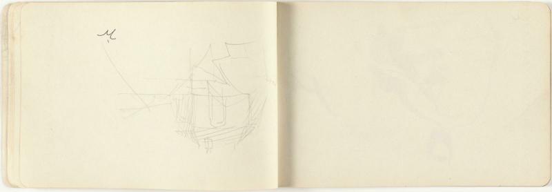 Carnet (Ensemble indissociable) Carnet à souche sans reliure, tenu par une agraphe. Absence de couverture. Carnet comportant 30 feuillets dont 34 pages de dessins, 2 pages de dessins et notes et 24 pages vierges. Nombreux feuillets manquants. [vers 1928] | |