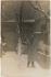 Brancusi avec la chienne Polaire dans l'impasse Ronsin enneigée