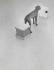 William Wegman puise dans la tradition qui voit dans l’animal une caricature de l’homme, lui conférant par là même une capacité de narration anthropomorphique – des fabulistes grecs aux taxidermistes du xixe siècle, qui construisaient des tableaux vivants dans lesquels des grenouilles en frac et en crinoline assistaient au bal de la sous-préfecture. Figure emblématique de la constance, son chien Man Ray se prête à tous les travestissements, à tous les exercices, tout en conservant son inaltérable dignité. L’essentiel de la démarche de Wegman réside cependant davantage dans la tension entre la perfection du procédé photographique utilisé – la grande chambre Polaroid – et l’aspect dérisoire de la saynète proposée : « [la] dérision mine toute croyance, dérange toute certitude, discrédite tout dogme ». Et d’ajouter : « L’humour a tué toute intention élevée dans mon travail ». C’est cette confrontation entre la perfection formelle de la photographie et le bricolage de la mise en scène qui fonde la démarche de Wegman. La beauté glacée de l’épreuve photographique et les couleurs à l’aspect saturé et brillant qui attirent le regard correspondent aux qualités d’une image publicitaire. Le sujet est vu frontalement, aucun aspect de ce qui est photographié ne nous échappe. En parasitant le langage de la publicité, l’artiste revendique le droit de traiter légèrement de choses sérieuses : l’ennui, la solitude, la mort et « la dérision généralisée du monde ».