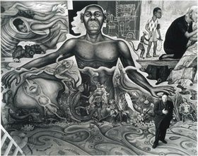 Diego Rivera devant la fresque "l'histoire du monde", Mexico City